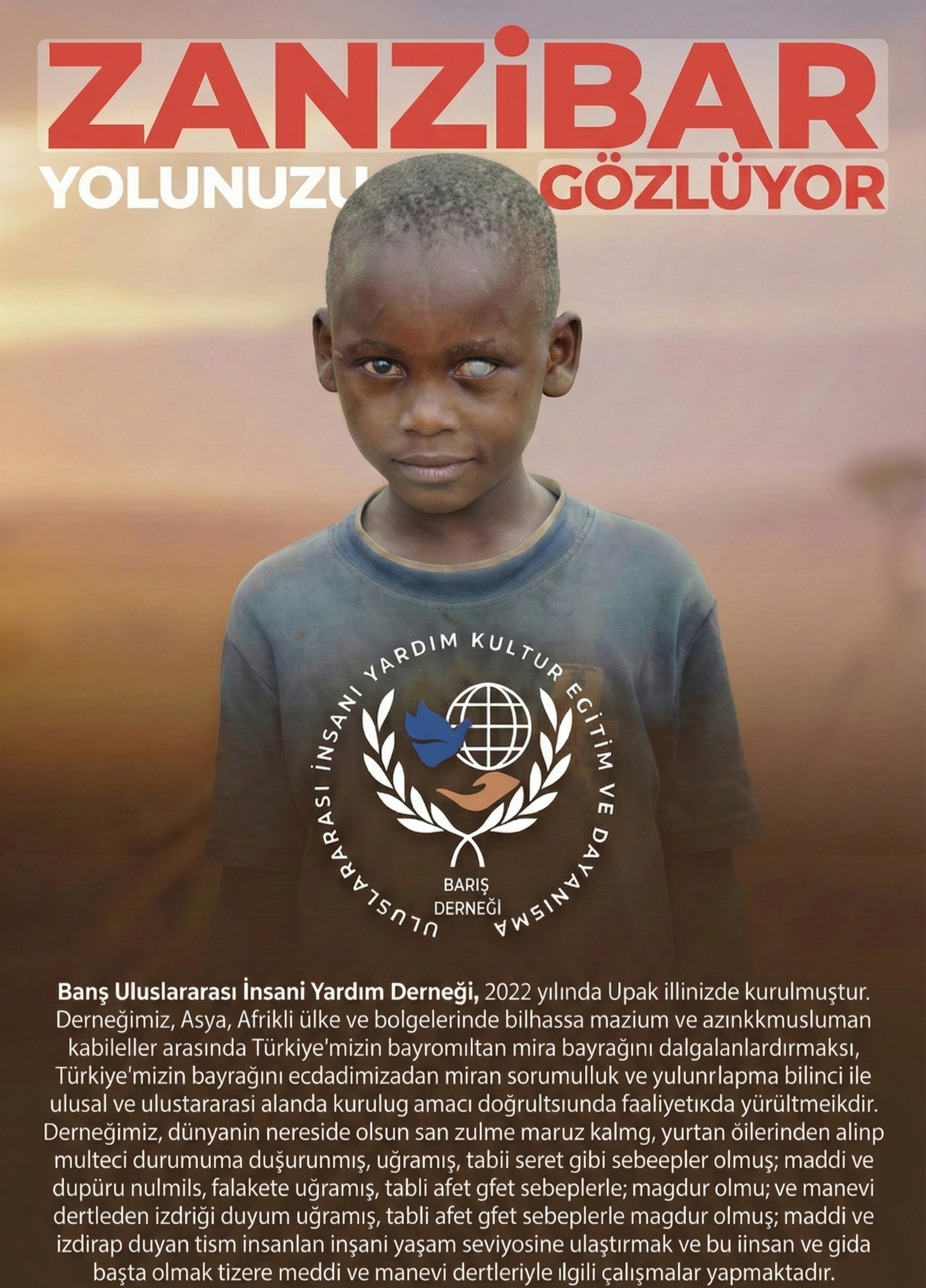 "Zanzibar’da hayata geçirmeyi planladığımız katarakt göz hastanesi projemiz için desteklerinizi bekliyoruz. Bu hastane, görme yetisini kaybetme riski taşıyan yüzlerce, hatta binlerce insan için yeniden ışık olacak. Basit bir operasyonla tedavi edilebilen katarakt, ne yazık ki imkânsızlıklar nedeniyle birçok insanın karanlıkta yaşamasına sebep oluyor. Amacımız; bu ihtiyacı karşılayacak modern, erişilebilir ve sürdürülebilir bir sağlık merkezi kurarak bölge halkına umut olmaktır. Sizlerin katkılarıyla, bir insanın dünyayı yeniden görmesini sağlayabilir, hayatlara dokunabiliriz. Her destek, bir gözün yeniden ışığa kavuşması demektir. Şimdiden ilginiz ve desteğiniz için teşekkür ederiz."